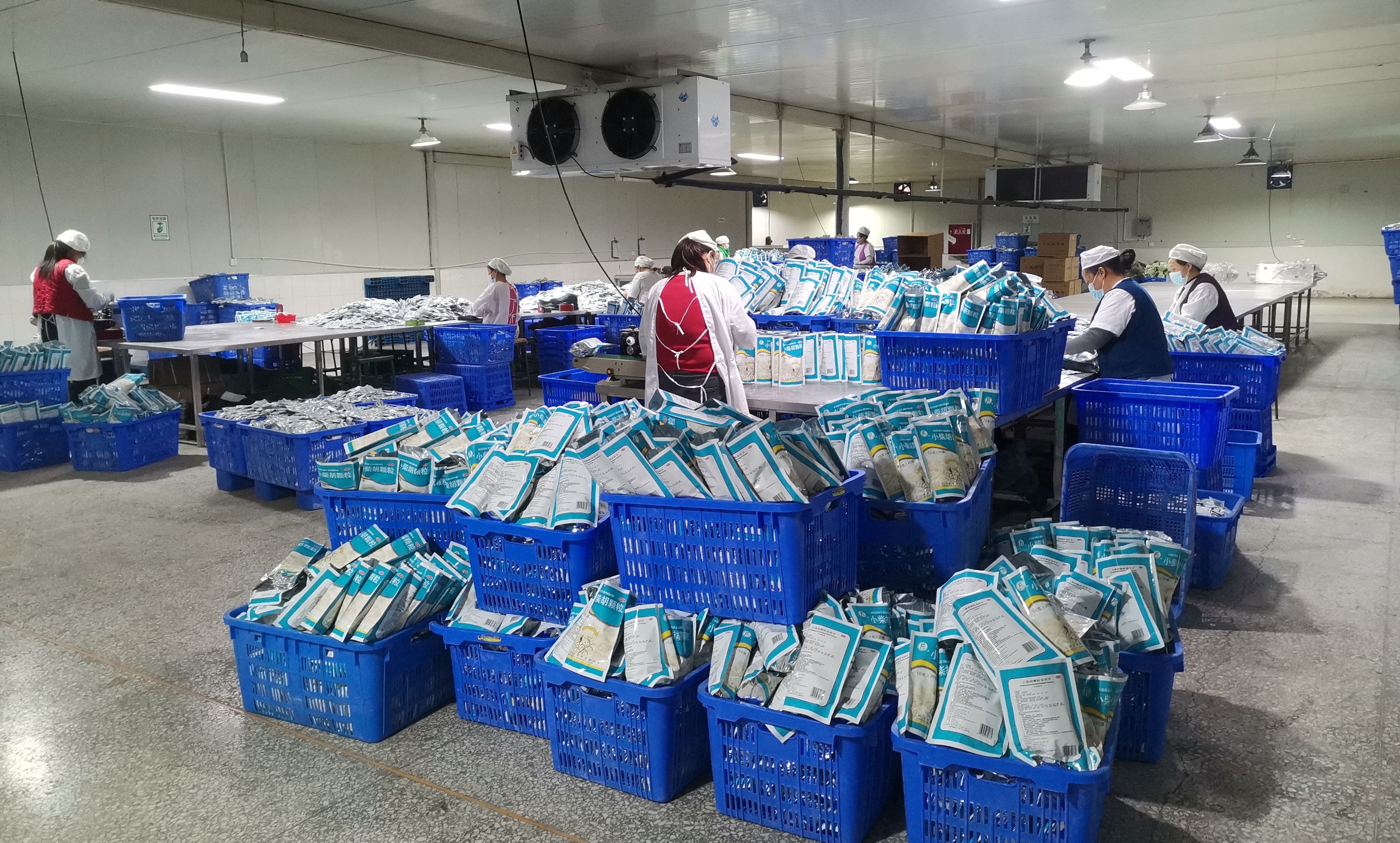 12月14日,防疫药品相关生产车间内开足马力,全力以赴保生产。在小柴胡颗粒生产车间内,生产线正在有序不紊地运行,一盒盒小柴胡颗粒经过检验合格后被打包、装箱。该产品主治:发汗解表,散风祛湿。它是一款扶正解表剂,由柴胡、前胡、川芎、枳壳、羌活、独活、茯苓、桔梗、人参、甘草等中药组成。适用于伤寒温病,憎寒壮热,项强头痛,四肢酸痛,噤口痢疾,无汗鼻塞,咳嗽有痰等症状。